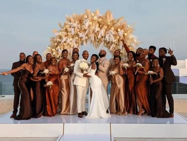 Set in the timeless glamour of a Black tie affair, this wedding-inspired scene features a stunning bridal party adorned in custom designs by Zina Lanay of Tailor Made by Zina and Dean “DMF” of HEIRPORT Apparel. From rich textures to modern silhouettes, every look honors legacy, unity, and the luxury of love